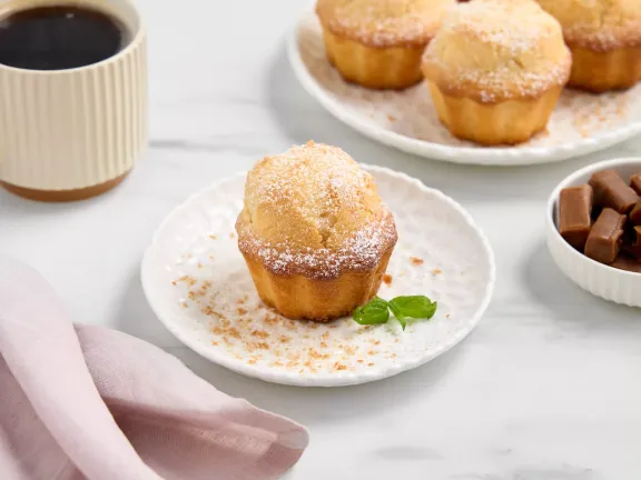 Gdy babeczki ostygną, udekoruj je cukrem pudrem, startym karmelem i świeżą gałązką mięty, aby nadać im elegancji. Podawaj te wspaniałe babeczki z filiżanką gorącej herbaty, delektując się każdym kęsem.